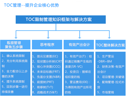 TOC是一套管理理念與管理工具的結(jié)合,它把企業(yè)在實(shí)現(xiàn)其目標(biāo)的過程中現(xiàn)存的或潛伏的制約因素稱為“約束”,通過逐個識別和消除這些約束,使得企業(yè)的改進(jìn)方向和改進(jìn)策略明確化,從而達(dá)到幫助企業(yè)更有效地實(shí)現(xiàn)其目標(biāo)的目的。通過建立與實(shí)施TOC管理模式,持續(xù)推進(jìn)與貫徹落實(shí)自主經(jīng)營管理,促進(jìn)企業(yè)管理標(biāo)準(zhǔn)化、簡單化、高效化,實(shí)現(xiàn)內(nèi)部管理的持續(xù)改善。在文化層面,尊重激勵員工發(fā)揮潛能,打造并維持持續(xù)改進(jìn)的文化;在人才培養(yǎng)層面,培養(yǎng)和提升員工技能,讓其成為員工成長及交流的平臺。