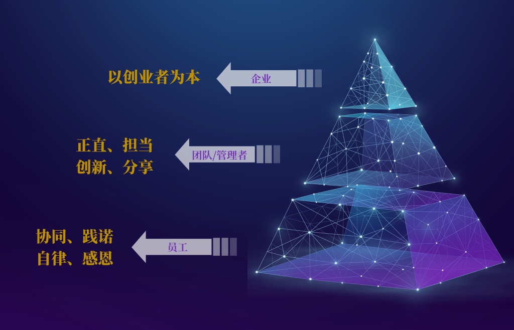 面對撲面而來的創(chuàng)新時代,弘信創(chuàng)業(yè)工場進(jìn)一步明確“以創(chuàng)業(yè)者為本”的核心理念,針對團(tuán)隊與管理層提出“正直、擔(dān)當(dāng)、創(chuàng)新、分享”的價值觀要求,將“協(xié)同、踐諾、自律、感恩”作為每一位員工都應(yīng)秉承的底層價值觀,以全新的精神面貌迎接二次創(chuàng)業(yè)。